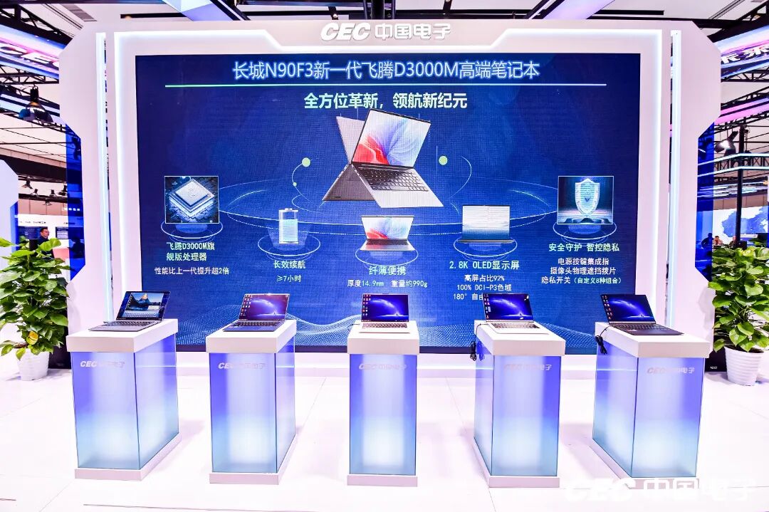 本次大会上,中国电子展区以“自主筑基 智驱未来”为主题,围绕数智底座、数智政务、数智税务、数智安全、数据要素等板块,集中展示了飞腾腾云S系列高性能处理器CPU、腾锐D系列高效能桌面CPU,银河麒麟操作系统V11、长城N90旗舰笔记本、达梦数据库管理系统DM8及共享集群软件、中电金信金融级数字底座“源启”、中国软件智慧税务及乐税大模型、数据产业集团“归集清洗—加工标注—质量评测—语料服务”全链路体系、中国电子云CECSTACK专属云、长城AI服务器电源、迈普智算网络、奇安信大模型安全护栏及AISOC智能网络安全运营平台等硬核产品,充分彰显中国电子全产业链协同创新能力。